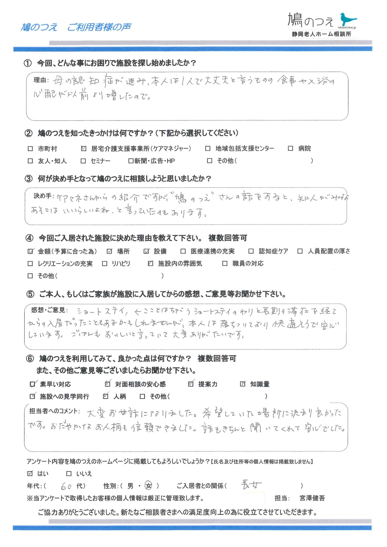 アンケート⑤にある通り、ご本人も入居されて安心しているとの事です。