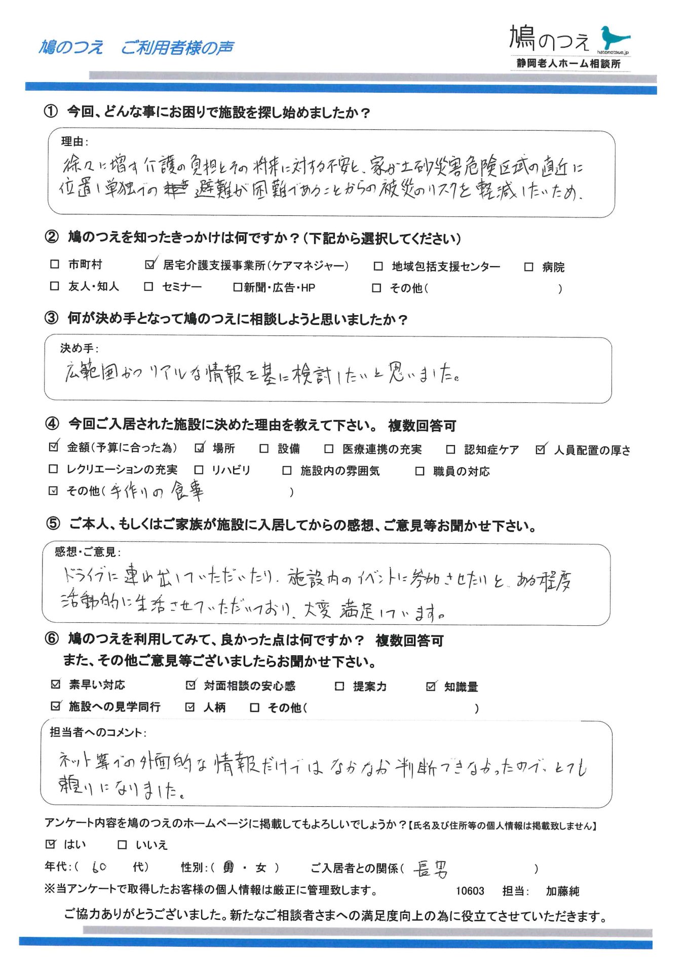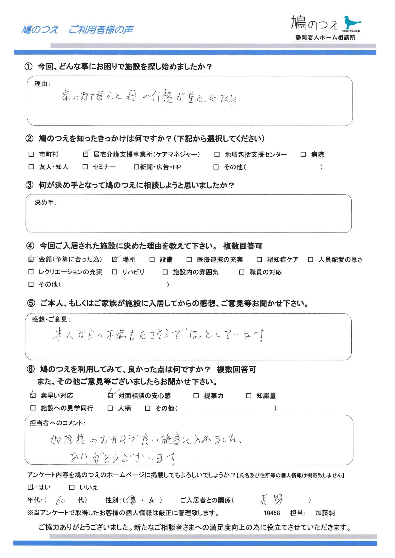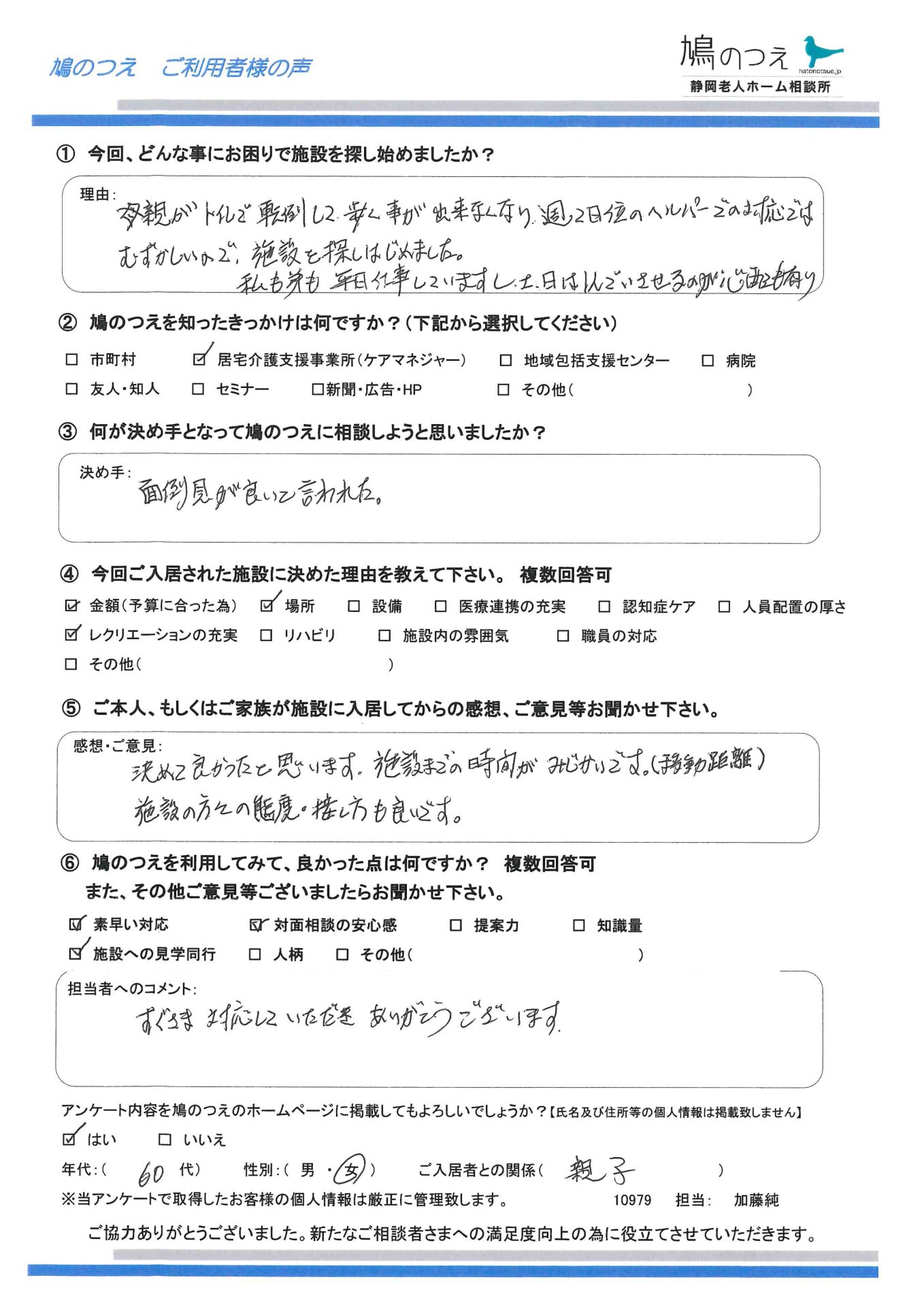 ケアマネジャー様からのご紹介で鳩のつえにご相談。 ご家族と面談させて頂きま ...